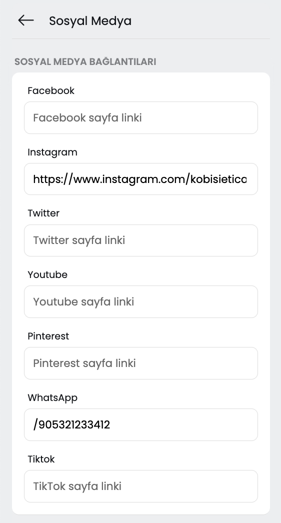 Sitenize markanızın Instagram hesabını bağlamak için Instagram URL’nizi girebileceğiniz alandır.