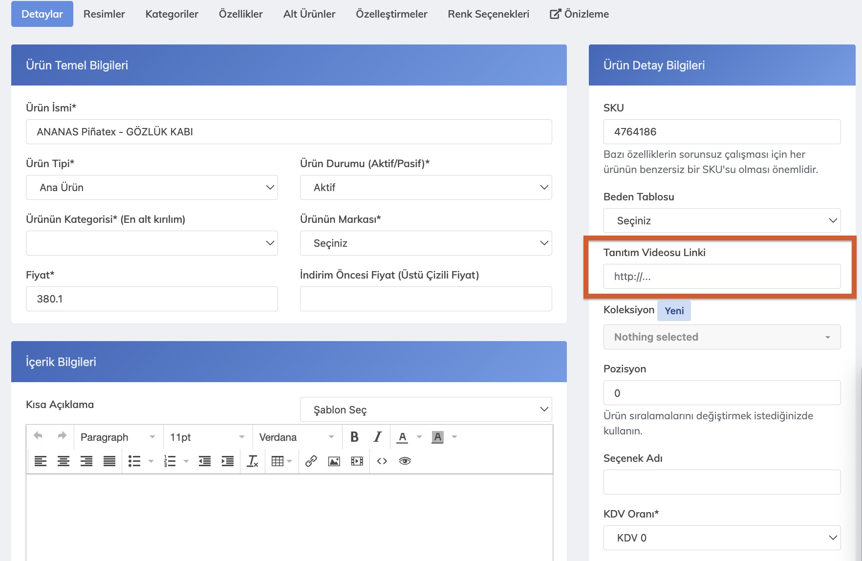 Tanıtım videosu Linki bölümü şuanda yalnızca Accessories temamızda aktif durumdadır. Eğer diğer temalarımızdan birinde de bu özelliği kullanmak isterseniz müşteri temsilciniz ile iletişime geçebilirsiniz.
